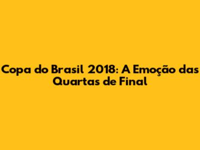 As quartas de final da Copa do Brasil 2018 deixaram um legado de emoção e memórias inesquecÃveis. Os jogos foram marcados por lances geniais, reviravoltas, disputas acirradas e muita paixão pelo futebol. As equipes entraram em campo com tudo, buscando a tão sonhada vaga na semifinal, proporcionando um espetáculo que ficará para sempre na memória dos torcedores. As torcidas, com suas vibrações e cânticos, deram um show à parte, mostrando a força e a paixão pelo futebol. Os jogadores, com suas atuações de gala, se tornaram Ãdolos para suas torcidas. E os técnicos, com suas estratégias e táticas, tiveram um papel fundamental na condução das equipes rumo à semifinal. A Copa do Brasil é uma competição que emociona, surpreende e une os torcedores. E as quartas de final de 2018 foram um exemplo disso, com jogos que ficarão para sempre na memória dos amantes do futebol. Que venham as próximas edições, com mais emoção, mais surpresas e mais momentos inesquecÃveis.