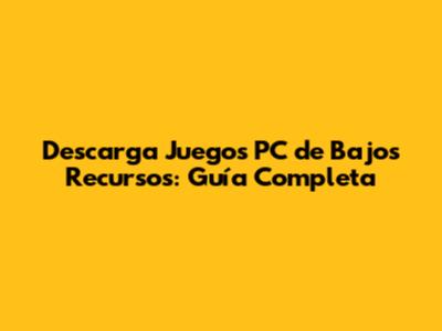 Descarga Juegos PC De Bajos Recursos: Guía Completa