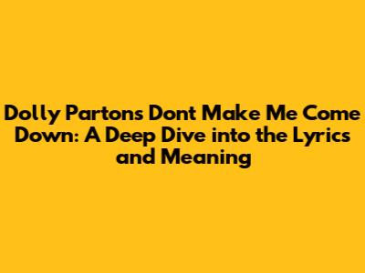 Hey music lovers! Today, we're diving deep into a classic from the Queen of Country herself, Dolly Parton. We're talking about her song "Don't Make Me Come Down." Now, you might be humming the tune, but have you ever really stopped to think about what Dolly is singing about? This song, like many of Dolly's masterpieces, is packed with emotion, storytelling, and that signature wit we all adore. So, grab your coffee, settle in, and let's unpack the layers of this gem.