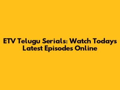 ETV Telugu Serials: Watch Today's Latest Episodes Online