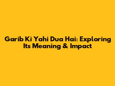 Garib Ki Yahi Dua Hai: Exploring Its Meaning & Impact