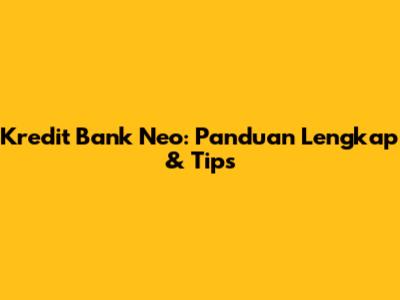 Kredit Bank Neo: Panduan Lengkap & Tips