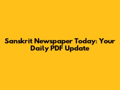 Sanskrit Newspaper Today: Your Daily PDF Update