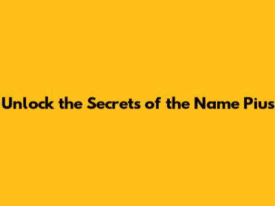 Unlock The Secrets Of The Name Pius