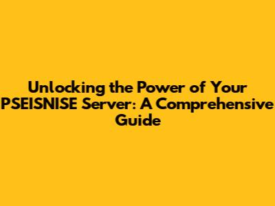 Unlocking The Power Of Your PSEISNISE Server: A Comprehensive Guide